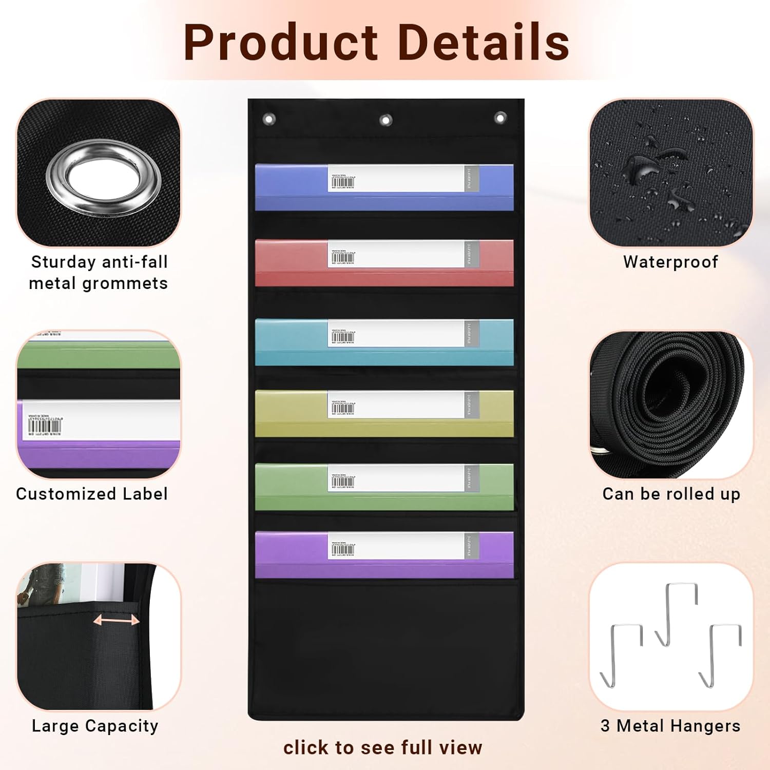 - Ample Storage Capacity: Features 6 large pockets with a depth of 7 inches and a width of 13.2 inches. This versatile organizer can hold up to 400 A4 sheets, making it perfect for documents, files, notebooks, and various school or office supplies.